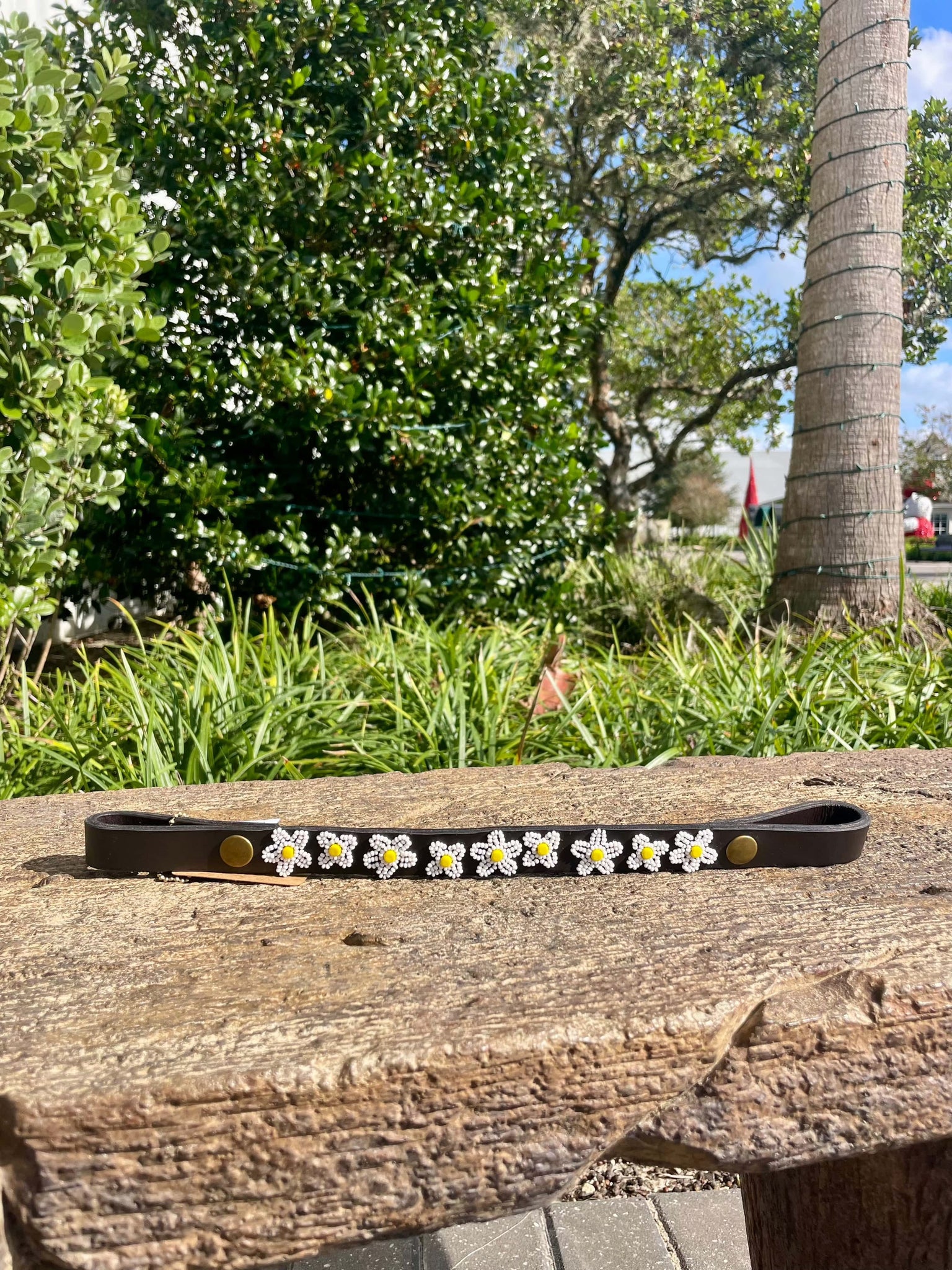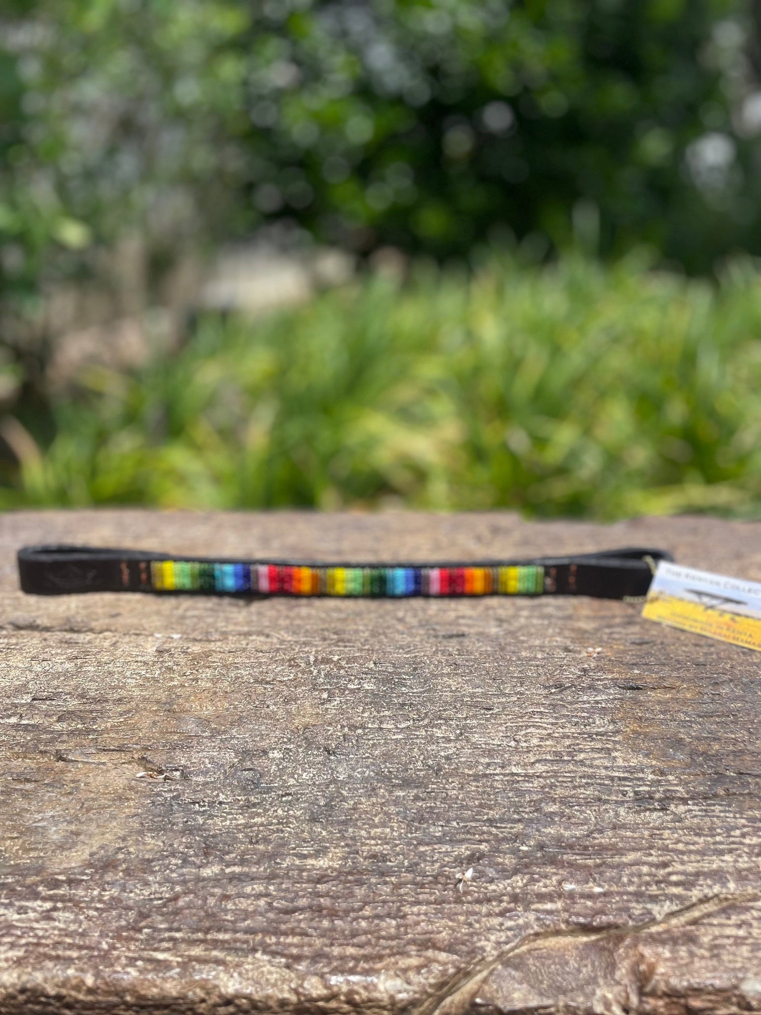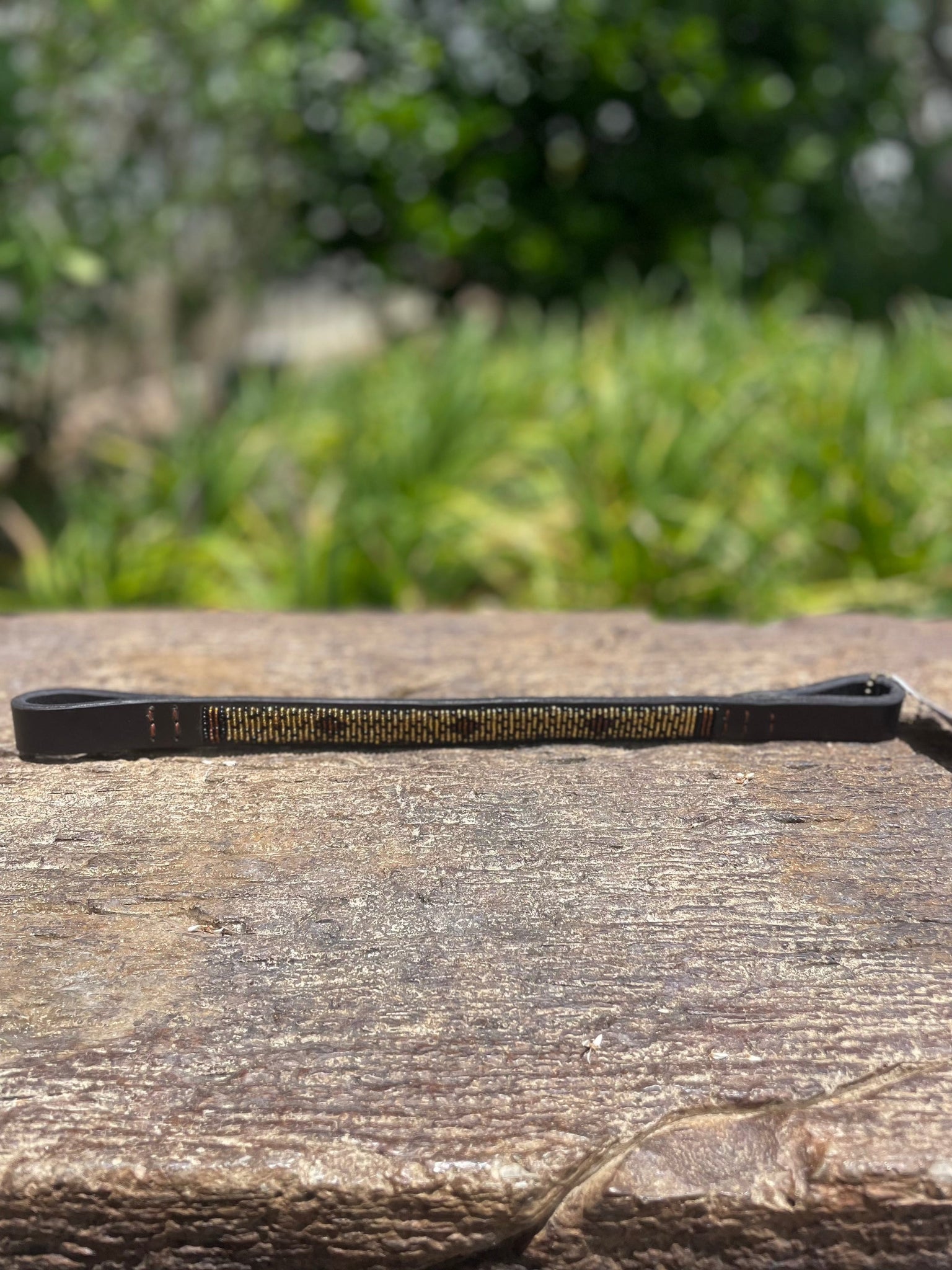 Introducing our exquisite hand-beaded browbands, meticulously crafted by the talented mamas of the Maasai Tribe on durable brown leather. Available in sizes ranging from 14 to 17 inches, these browbands are the epitome of artisanal craftsmanship.