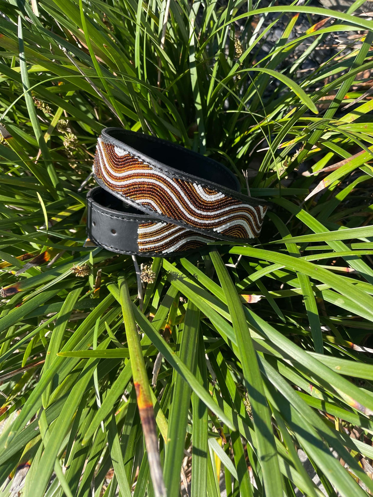 Each creation is meticulously handcrafted by skilled Maasai Mamas using premium, durable leather, with hand-cast buckles and clasps. Crafting one collar takes a Maasai Mama about a day, while a belt requires two days of dedicated beading. The beads are carefully hand-sewn onto the first layer of leather, followed by the addition of high-quality hardware and a second leather layer, which is glued and stitched for added softness and durability.